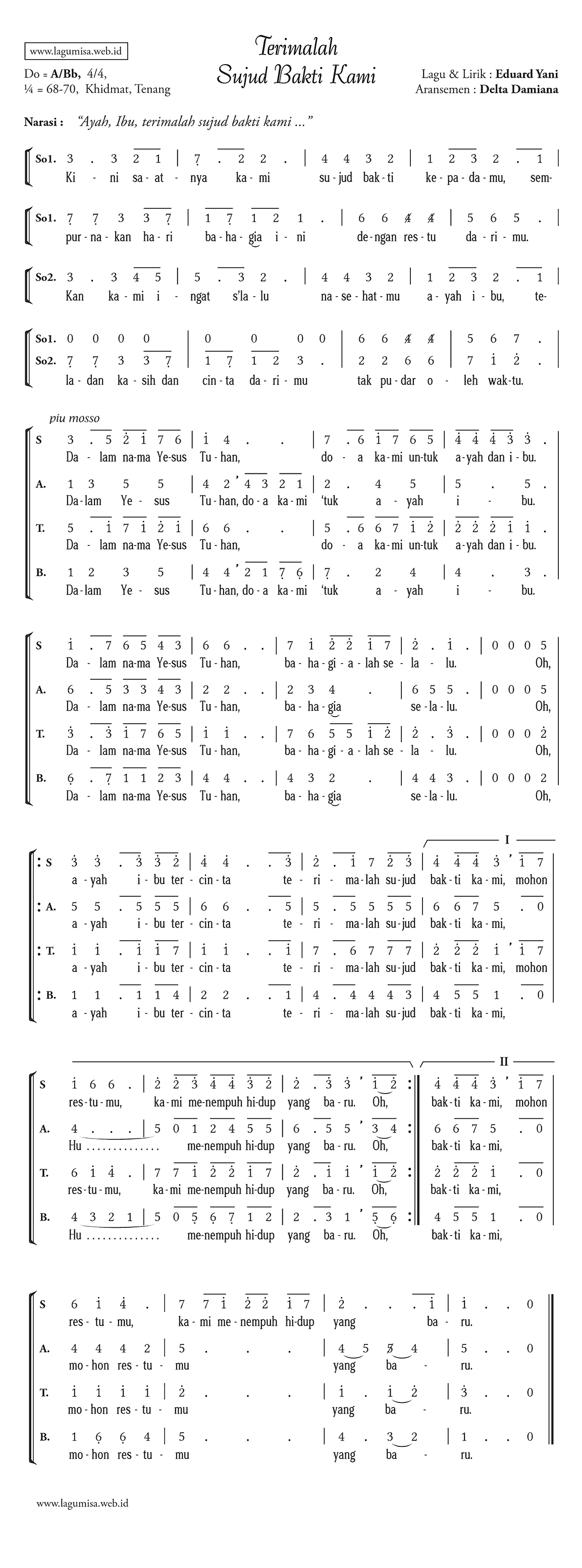TERIMALAH SUJUD BAKTI KAMI Lagu & lirik : Eduard Yani |  Aransemen : Delta Damiana Do = A/Bb, 4/4, Khidmat, Tenang