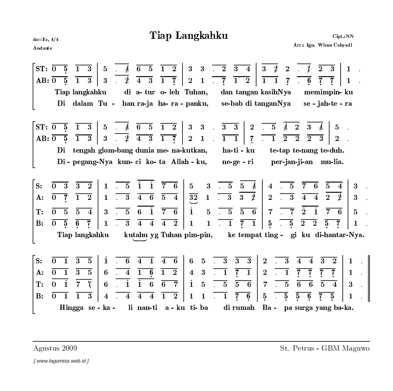 TIAP LANGKAHKU | Cipt: NN | Arr: Ign Wisnu Cahyadi | Do=Es, 4/4, Andante |