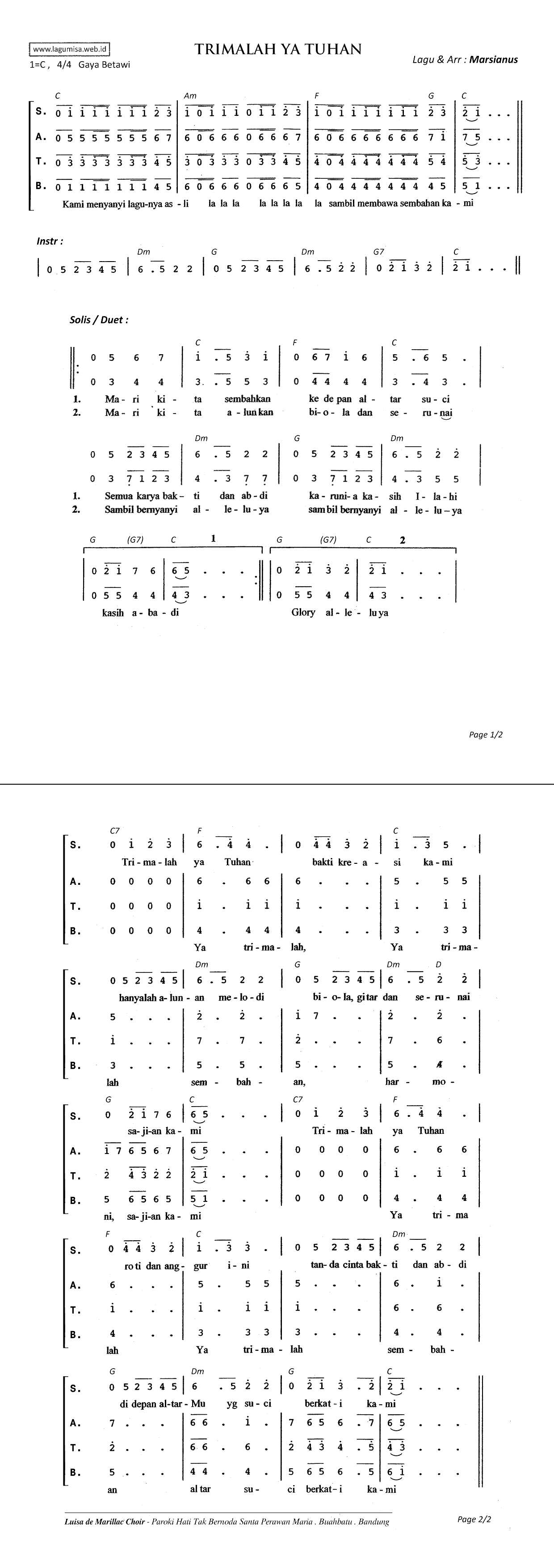 TRIMALAH YA TUHAN | Gubahan : Marsianus | Gaya Betawi; 1=C; 4/4 |