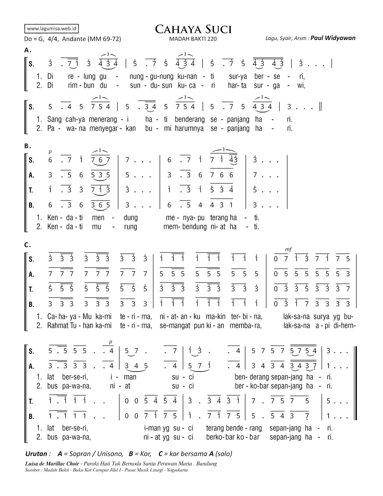 MB-220 CAHAYA SUCI 1=G, 4/4, Gaya Sunda Lagu, syair, dan arsm : Paul Widyawan