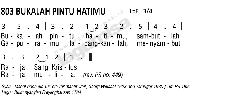 Lirik PS-803 | BUKALAH PINTU HATIMU | Syair : Macht hoch die Tur, die Tor macht weit, Georg Weissel 1623, terj. Yamuger 1980 / Tim PS 1991