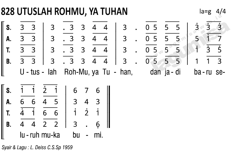 Lirik PS-828 | UTUSLAH ROHMU, YA TUHAN | Syair & Lagu : L. Deiss, C.S.Sp 1959