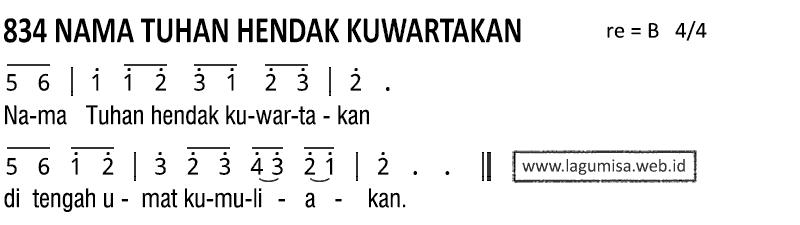 Lirik PS-834 | NAMA TUHAN HENDAK KUWARTAKAN | Syair & Lagu : J. Berthier