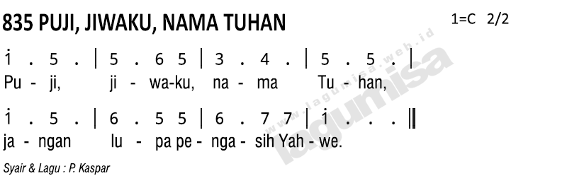 Lirik PS-835 | PUJI, JIWAKU, NAMA TUHAN | Syair & Lagu : P. Kaspar