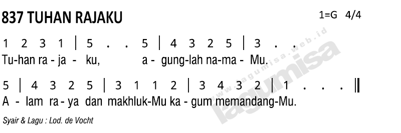 Lirik PS-837 | TUHAN RAJAKU | Syair & Lagu : Lod. de Vocht