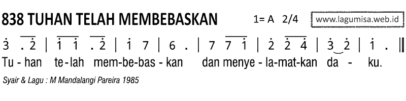 Lirik PS-838 | TUHAN TELAH MEMBEBASKAN | Syair & Lagu : M. Mandalangi Pareira 1985