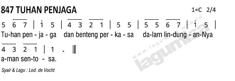 Lirik PS-847 | TUHAN PENJAGA | Syair dan lagu : Lod. de Vocht