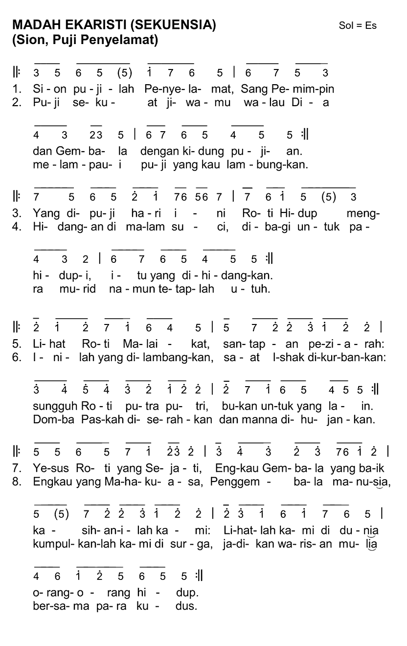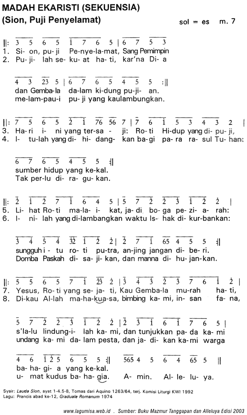 Lirik TAHUN A/B/C | MADAH EKARISTI (SEKUENSIA) | Dinyanyikan sebelum Alleluya pada HR Tubuh dan Darah Kristus