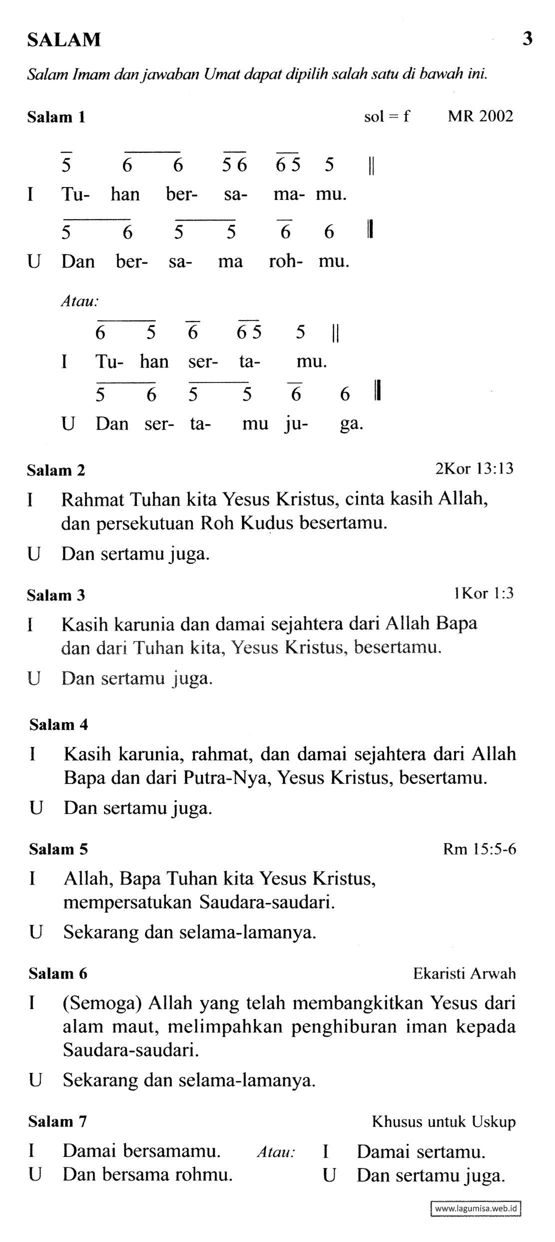 Lirik SALAM | TATA PERAYAAN EKARISTI 2005 | Ritus Pembuka