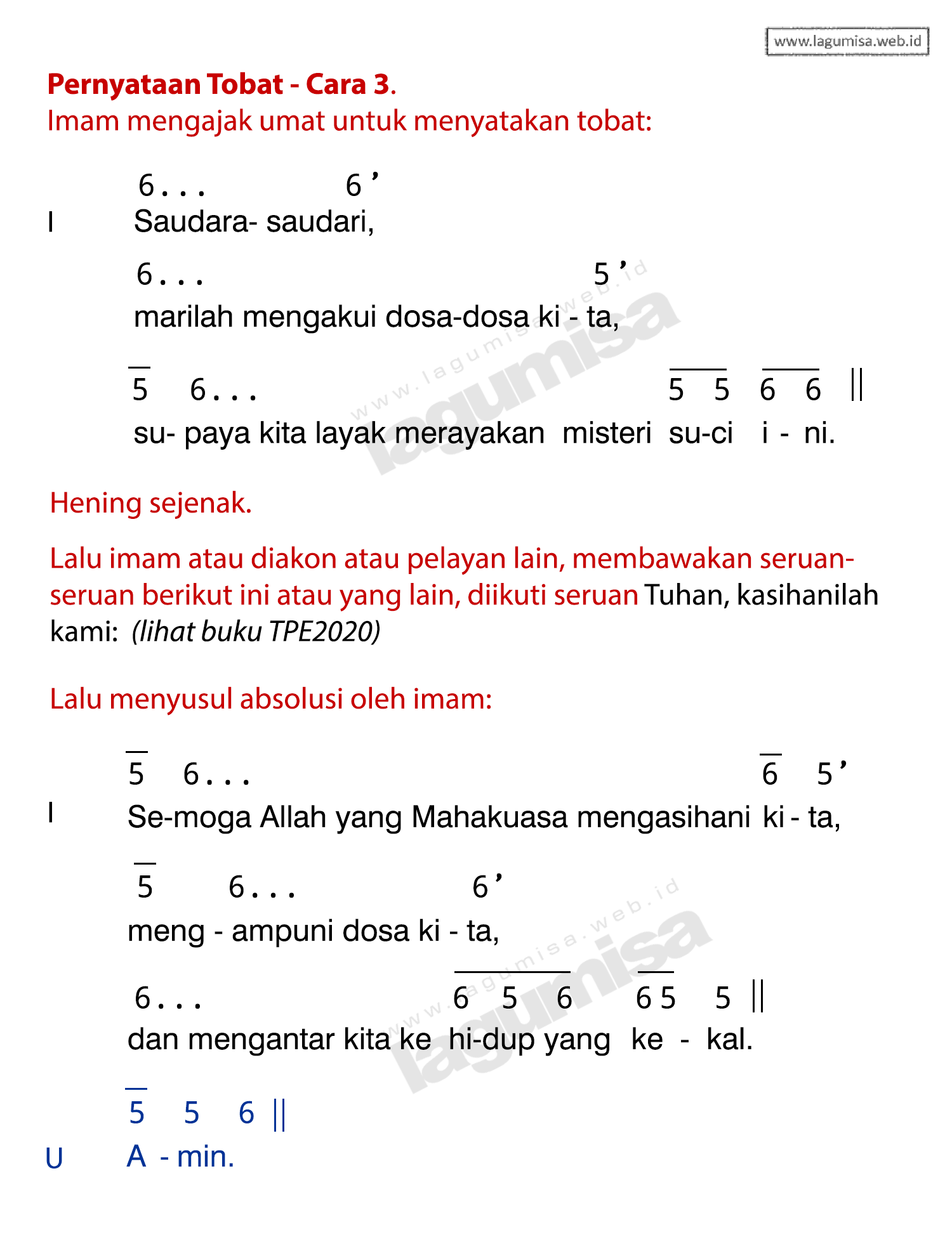 Lirik TOBAT - CARA 3 | Lagu sama dengan cara 1 | TATA PERAYAAN EKARISTI 2020 | Ritus Pembuka