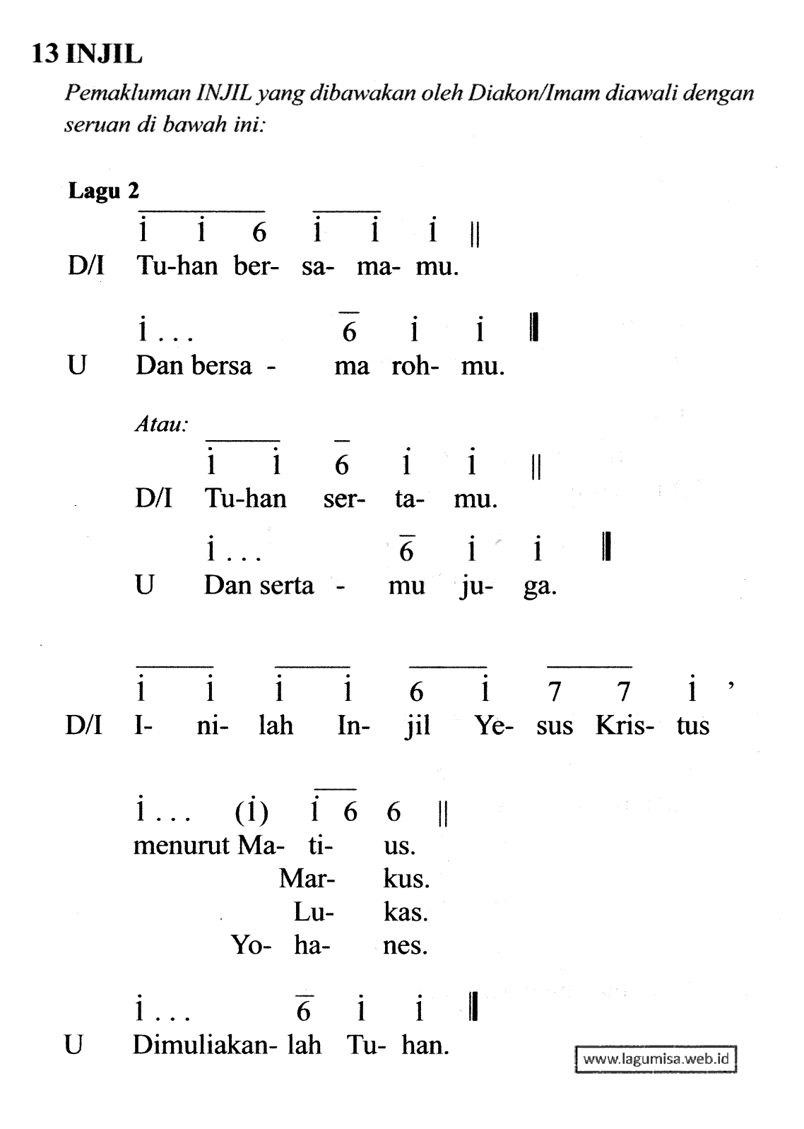 Lirik INJIL | Lagu 2 | TATA PERAYAAN EKARISTI 2005 | Liturgi Sabda
