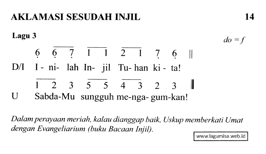 Lirik AKLAMASI SESUDAH INJIL | Lagu 3 | TATA PERAYAAN EKARISTI 2005 | Liturgi Sabda