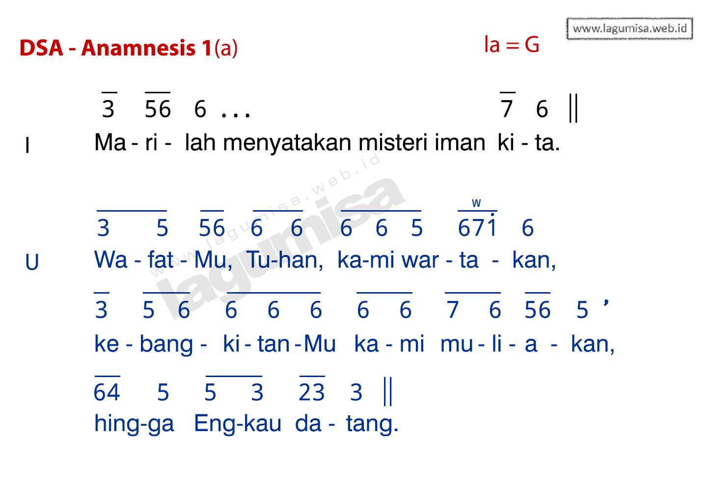 Lirik DSA - ANAMNESIS 1A | TATA PERAYAAN EKARISTI 2020 | Liturgi Ekaristi - Doa Syukur Agung