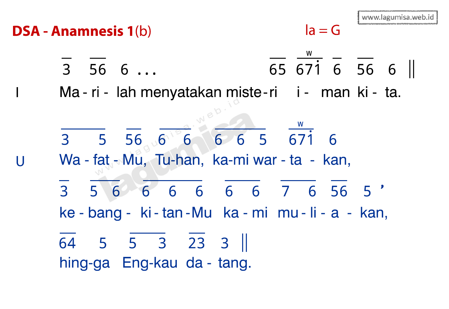 Lirik DSA - ANAMNESIS 1B | TATA PERAYAAN EKARISTI 2020 | Liturgi Ekaristi - Doa Syukur Agung