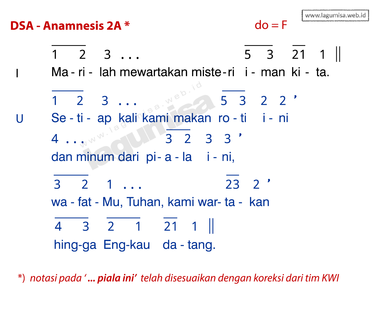 Lirik DSA - ANAMNESIS 2A | TATA PERAYAAN EKARISTI 2020 | Liturgi Ekaristi - Doa Syukur Agung