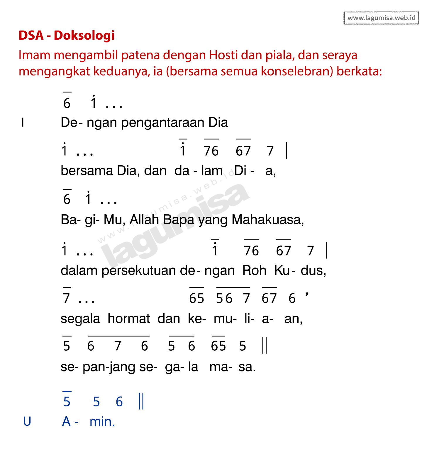 Lirik DSA - DOKSOLOGI | TATA PERAYAAN EKARISTI 2020 | Liturgi Ekaristi - Doa Syukur Agung
