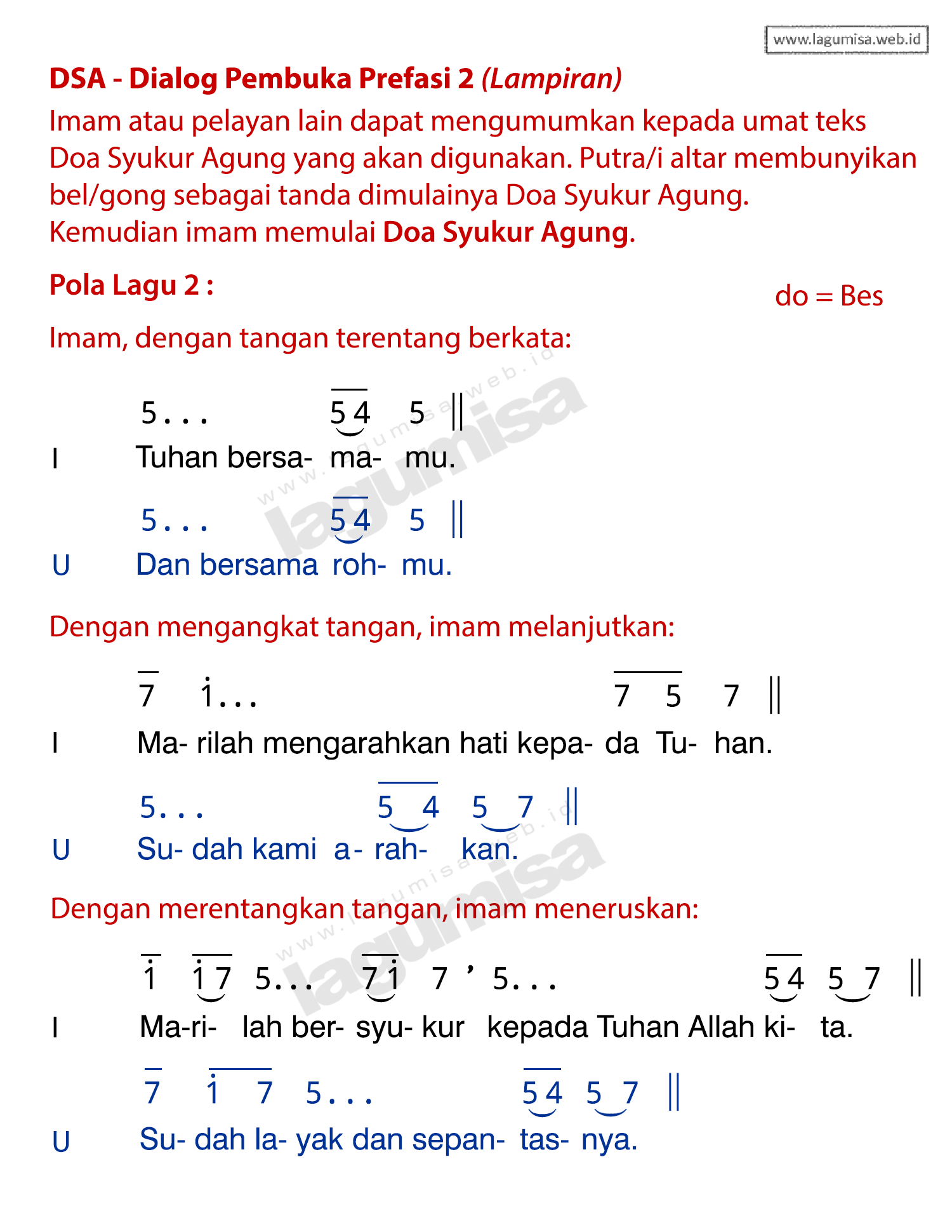 Lirik DSA - DIALOG PEMBUKA PREFASI 2 | Lampiran Pola 2 | TATA PERAYAAN EKARISTI 2020 | Liturgi Ekaristi - Doa Syukur Agung