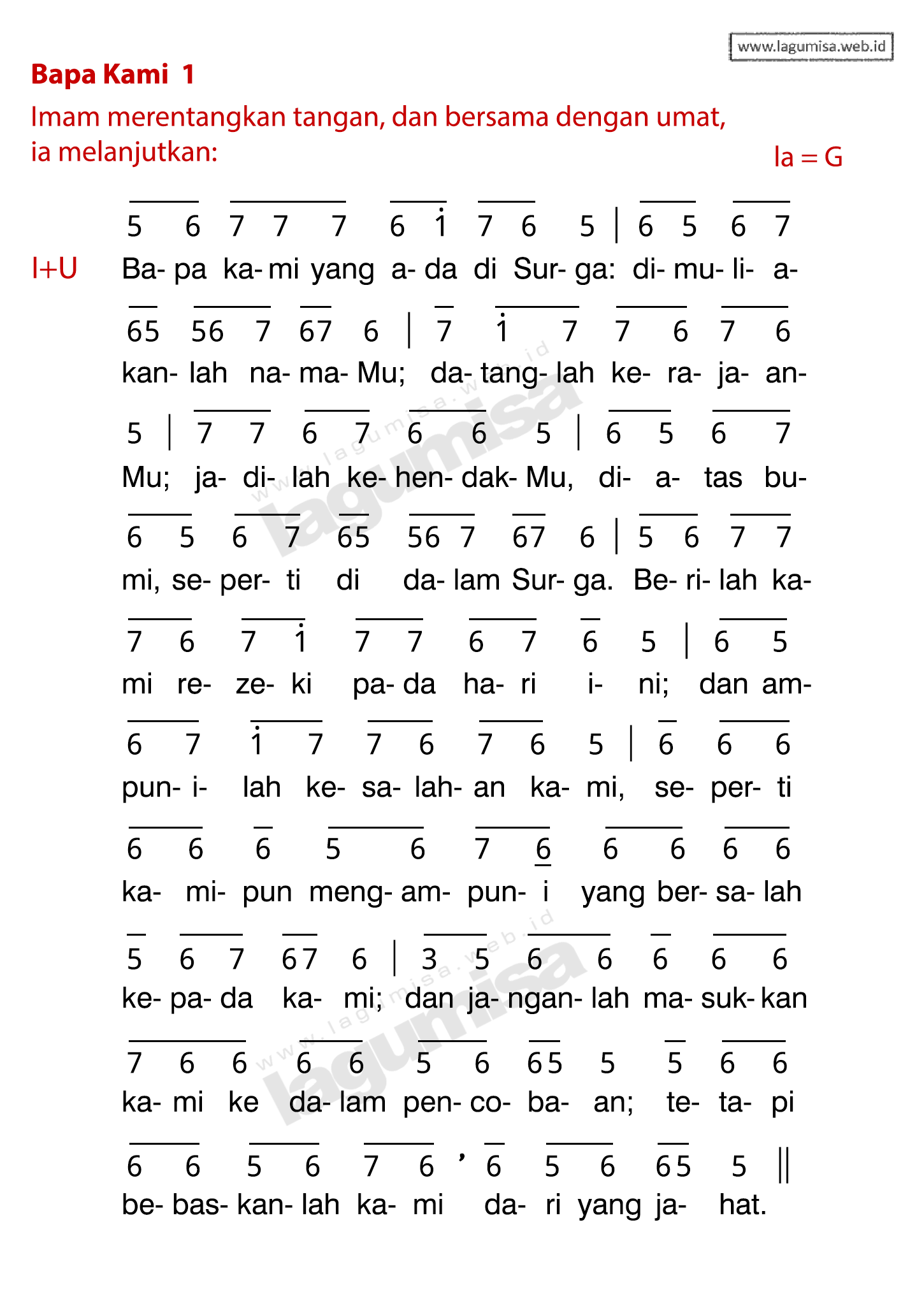 Lirik BAPA KAMI 1 | TATA PERAYAAN EKARISTI 2020 | Liturgi Ekaristi - Ritus Komuni