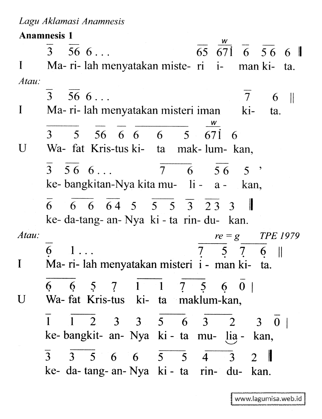 Lirik DOA SYUKUR AGUNG | ANAMNESIS 1 | TATA PERAYAAN EKARISTI 2005 | Liturgi Ekaristi