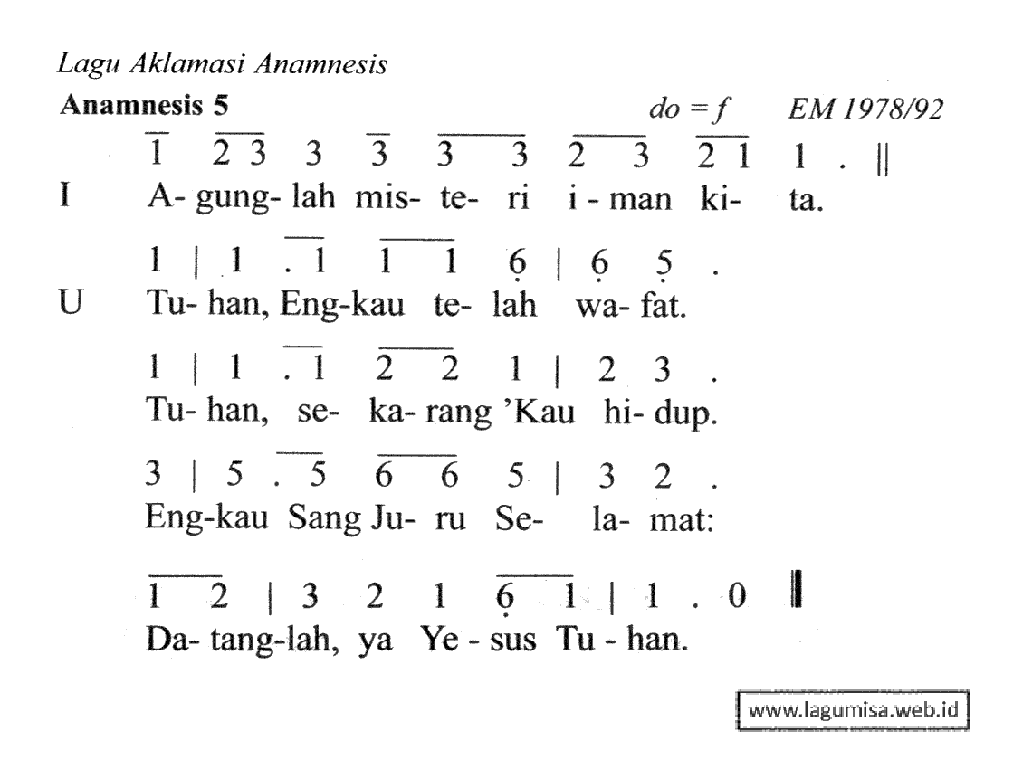 Lirik DOA SYUKUR AGUNG | ANAMNESIS 5 | TATA PERAYAAN EKARISTI 2005 | Liturgi Ekaristi