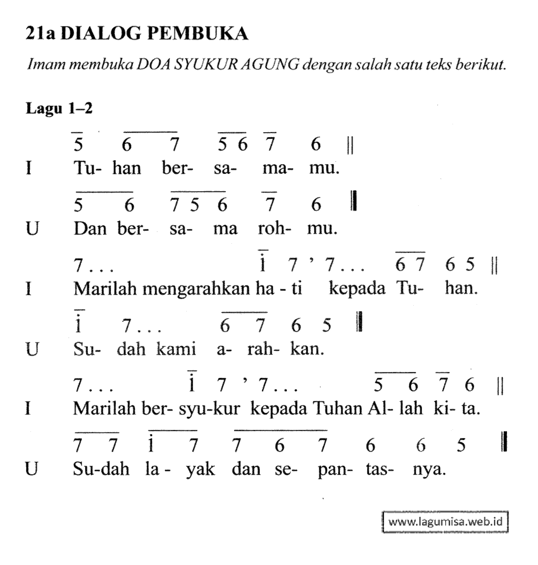 Lirik DOA SYUKUR AGUNG | DIALOG PEMBUKA | LAGU 1-2 | TATA PERAYAAN EKARISTI 2005 | Liturgi Ekaristi