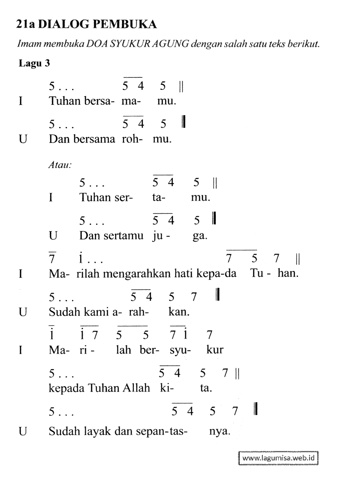 Lirik DOA SYUKUR AGUNG | DIALOG PEMBUKA | LAGU 3 | TATA PERAYAAN EKARISTI 2005 | Liturgi Ekaristi