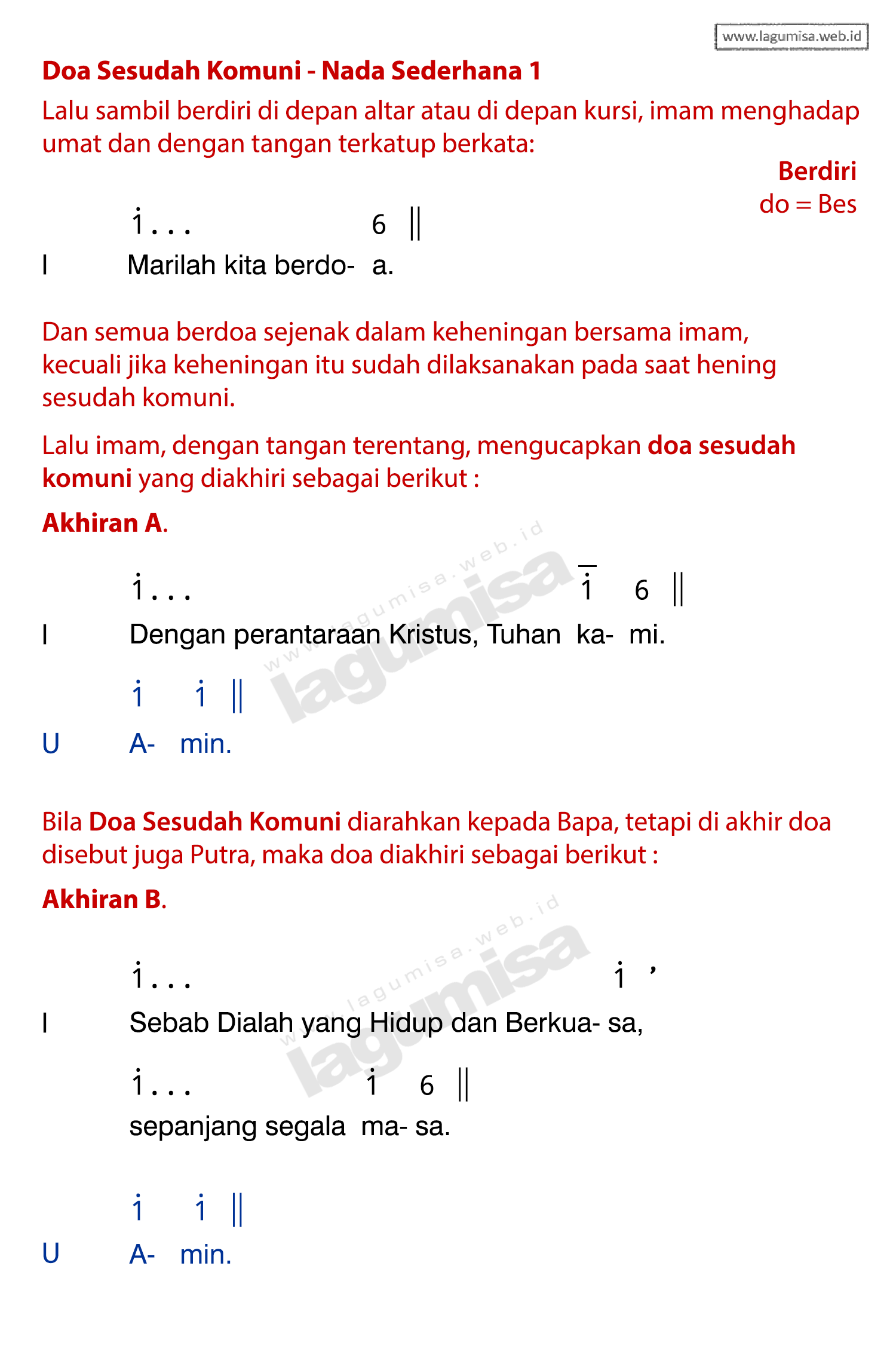 Lirik DOA SESUDAH KOMUNI | Nada Sederhana 1 | TATA PERAYAAN EKARISTI 2020 | Lagu-lagu Ritus Komuni