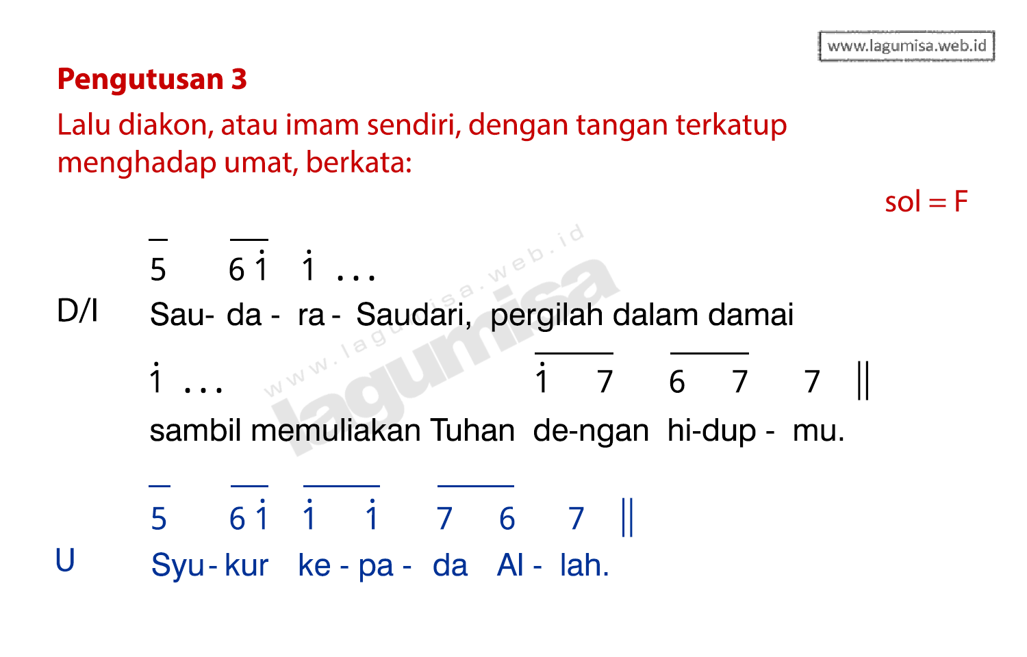 Lirik PENGUTUSAN 3 | TATA PERAYAAN EKARISTI 2020 | Ritus Penutup