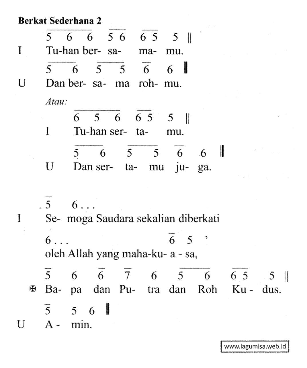 Lirik BERKAT SEDERHANA 2 | TATA PERAYAAN EKARISTI 2005 | Ritus Penutup