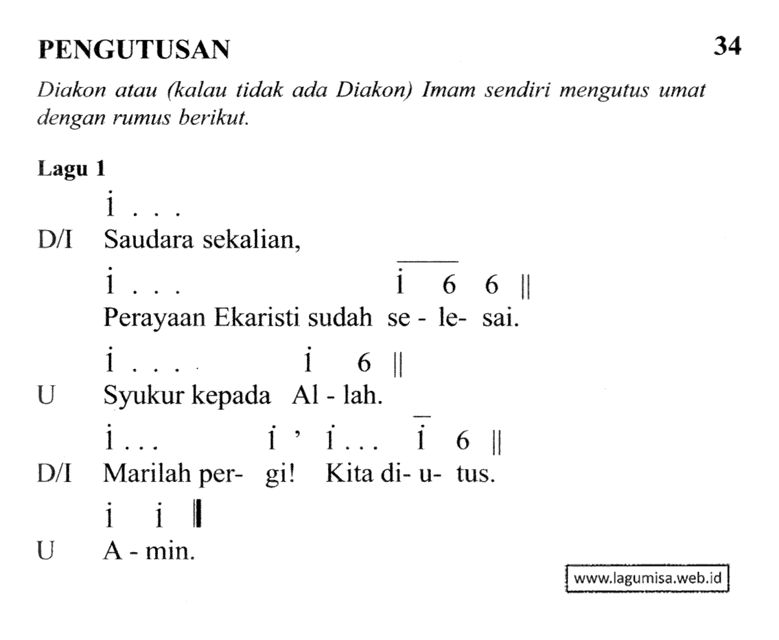 Lirik PENGUTUSAN | LAGU 1 | TATA PERAYAAN EKARISTI 2005 | Ritus Penutup